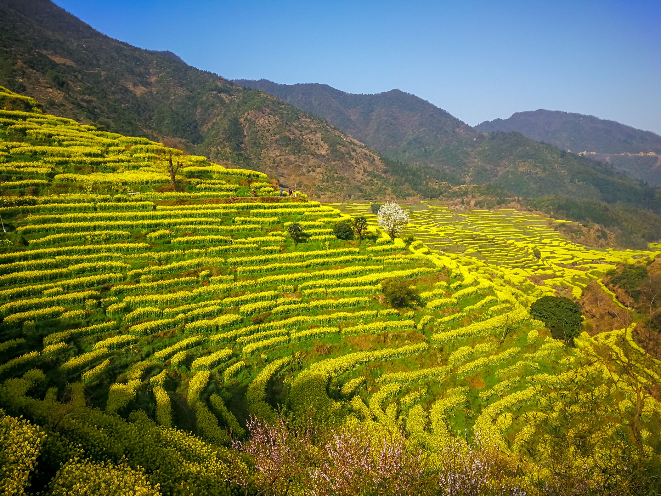 這裡的油菜花田不是平地上的,而是沿著山坡一層一層的梯田,到了春季油菜花開,呈現出婺源風光最優美的一面。