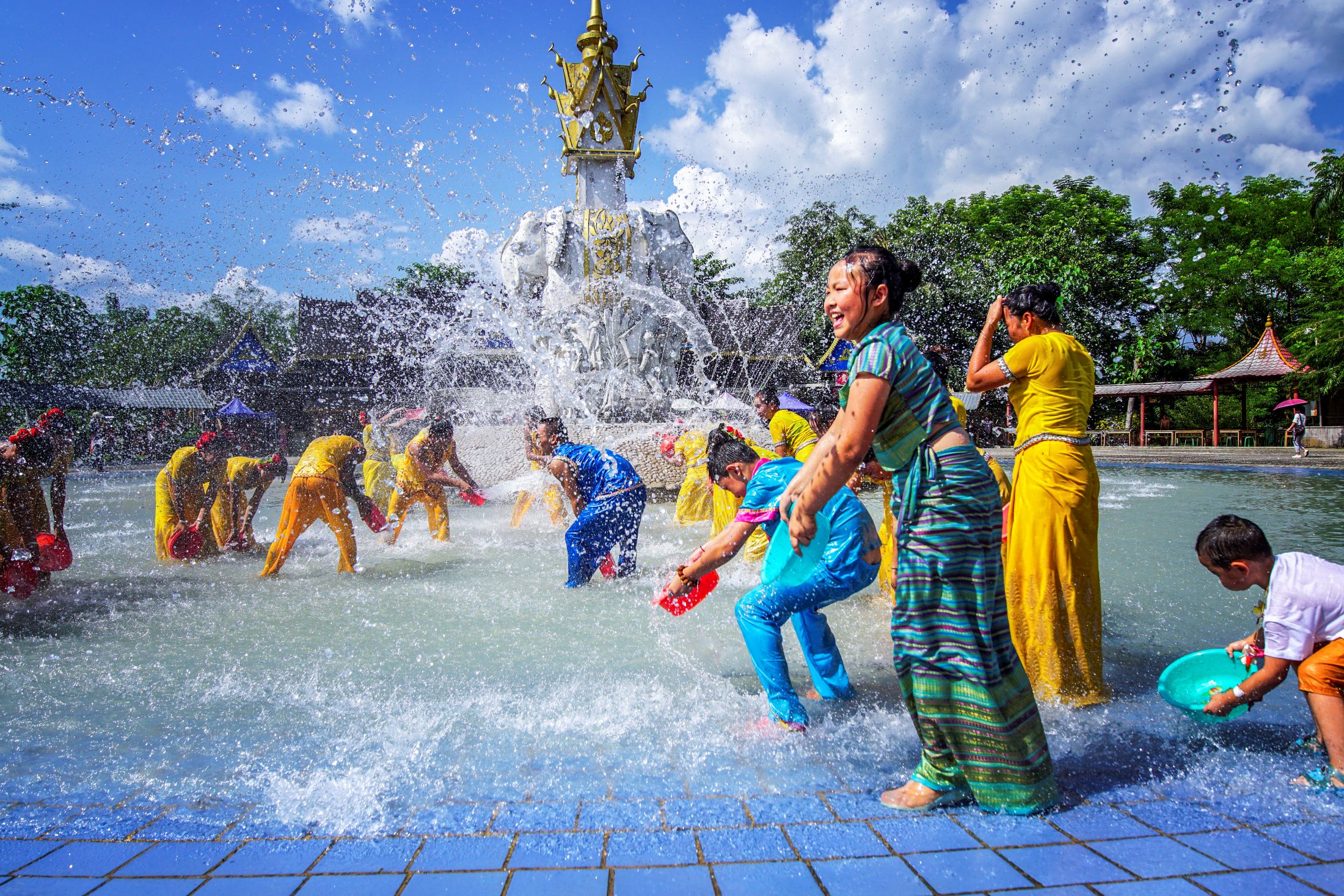 (體驗潑水狂歡),景區內的五個傣族村寨,曼將、曼春滿、曼聽、曼乍、曼嘎,距州府景洪市28公里。五個村寨共有309戶和1487人。世世代代,這裡的傣族村民都以農耕為業,用勤勞、智慧創造和豐富了燦爛的貝葉文化。