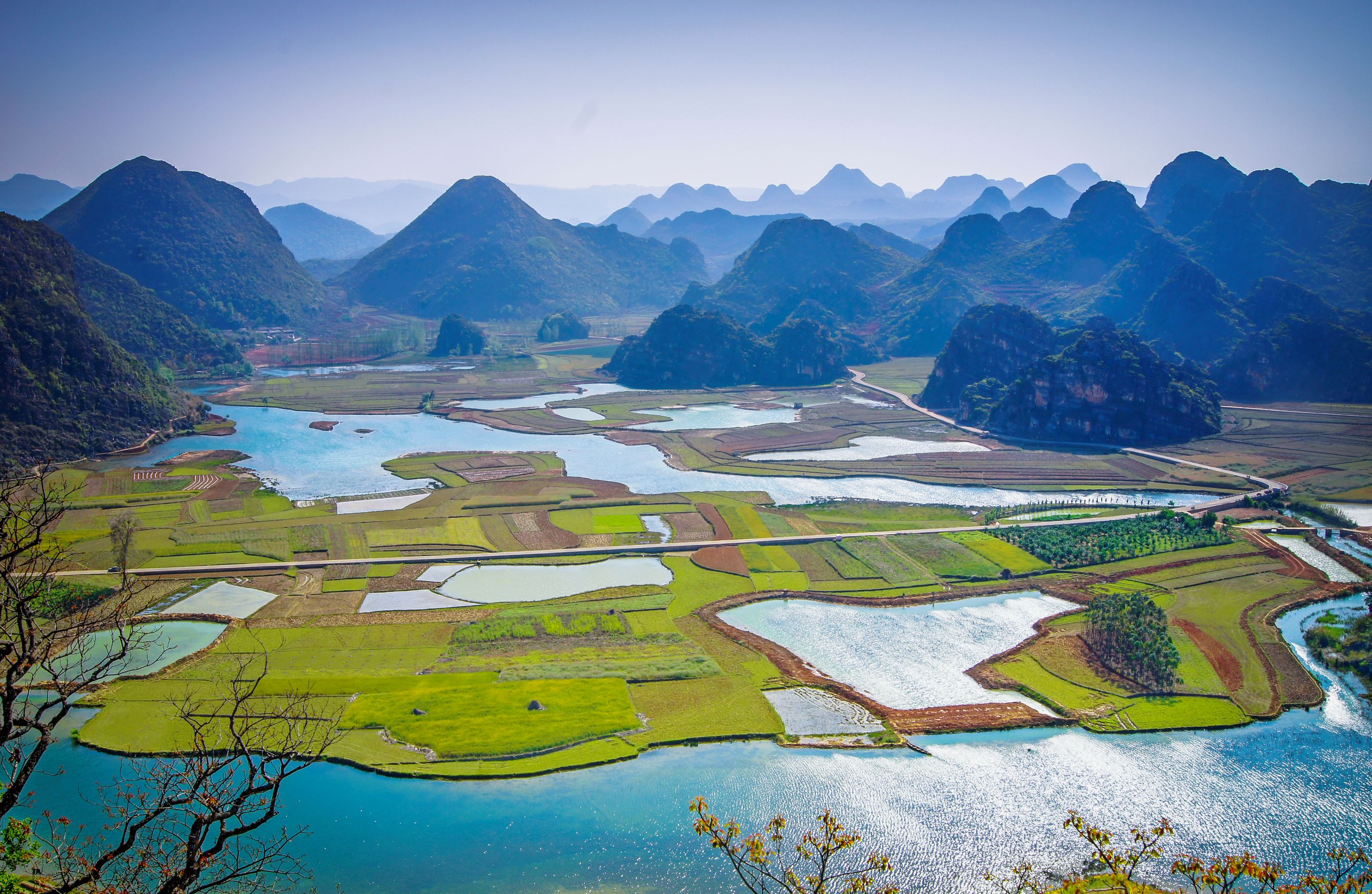 屬喀斯特地貌奇觀,由無數錐形小山叢錯落排列組成,面積近100平方公里12;最引人矚目的景觀是春季盛開的萬畝油菜花海,與峰林交融形成金色海洋,被吉尼斯認證為「世界最大自然天成花園」。