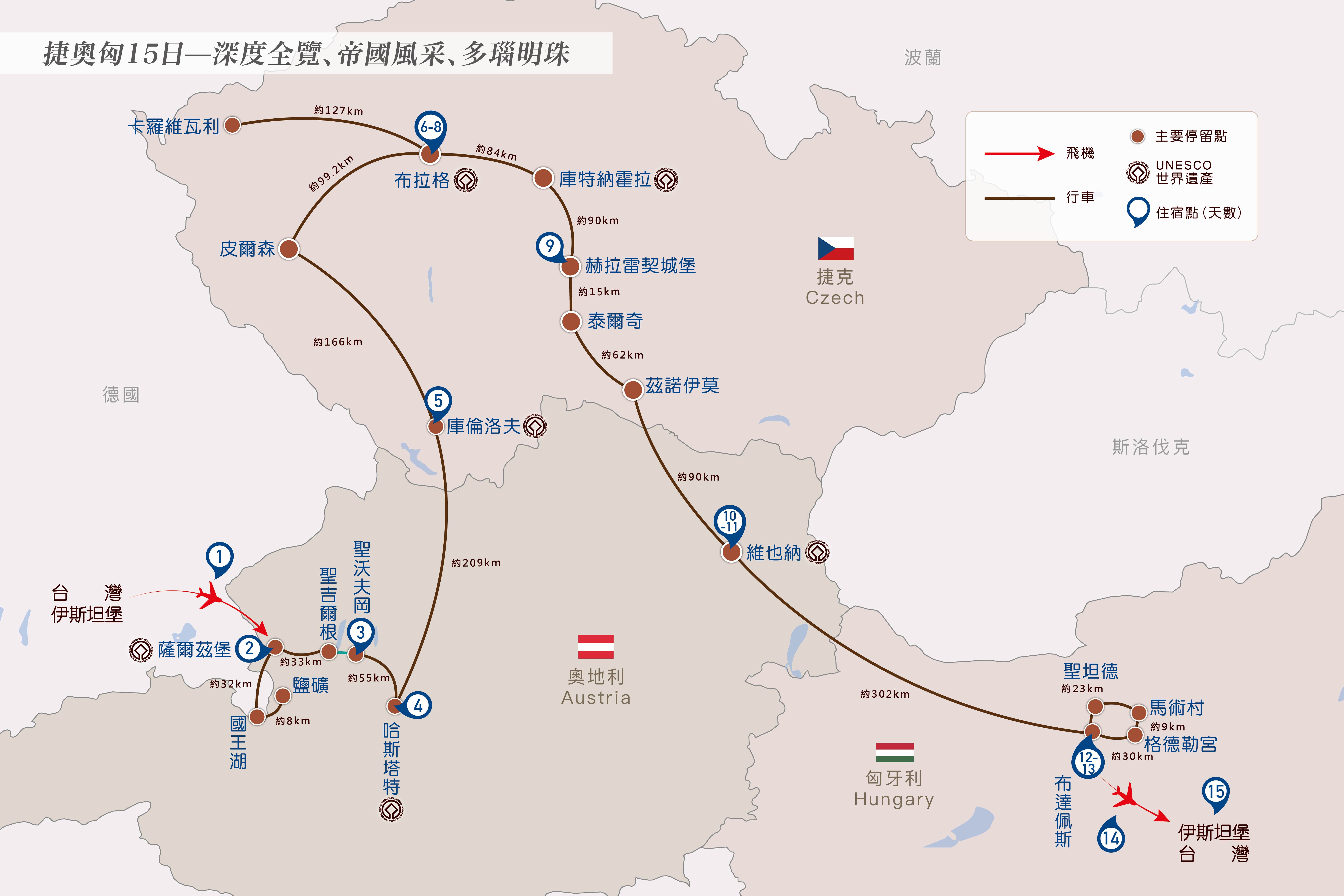 今日桃園機場集合,搭乘土耳其航空經伊斯坦堡飛往音樂之都薩爾茲堡。隔日上午抵達,展開精彩【奧捷匈深度全覽15日】。