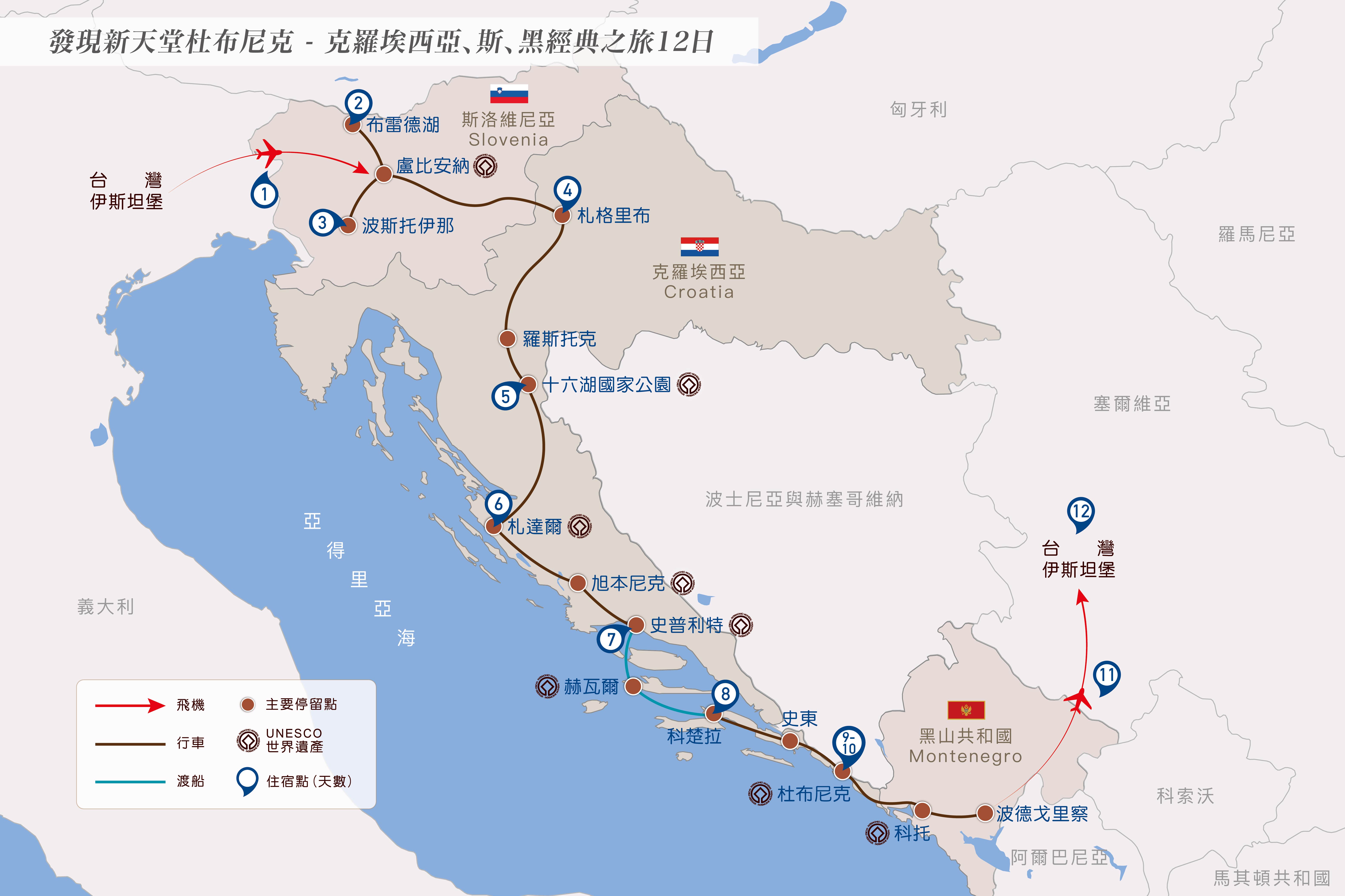 杜布尼克—95km—科托【黑山共和國】—85km—波德戈里察✈伊斯坦堡