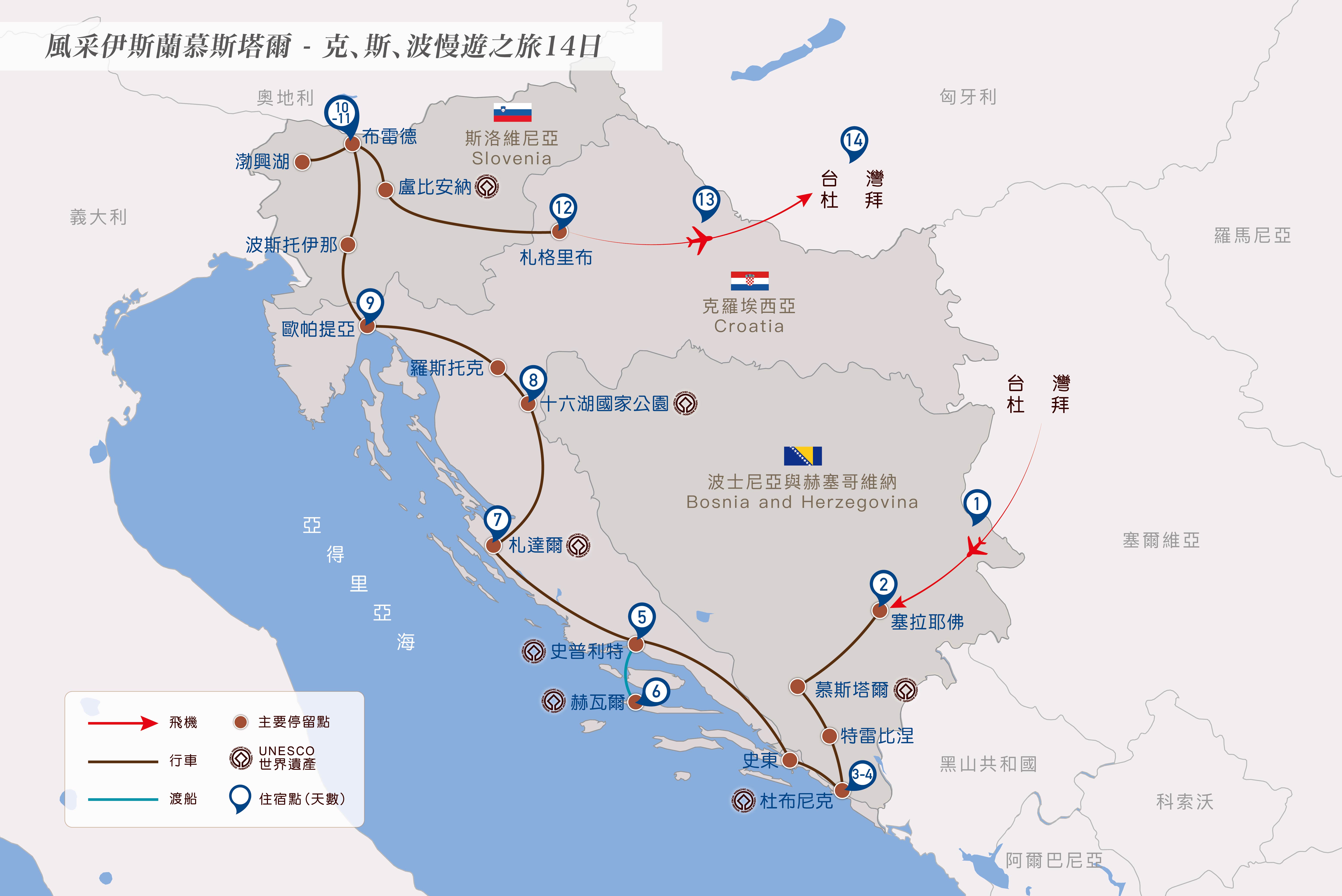 塞拉耶佛—130公里—慕斯塔爾—120公里—特雷比涅—35公里—杜布尼克【克羅埃西亞】