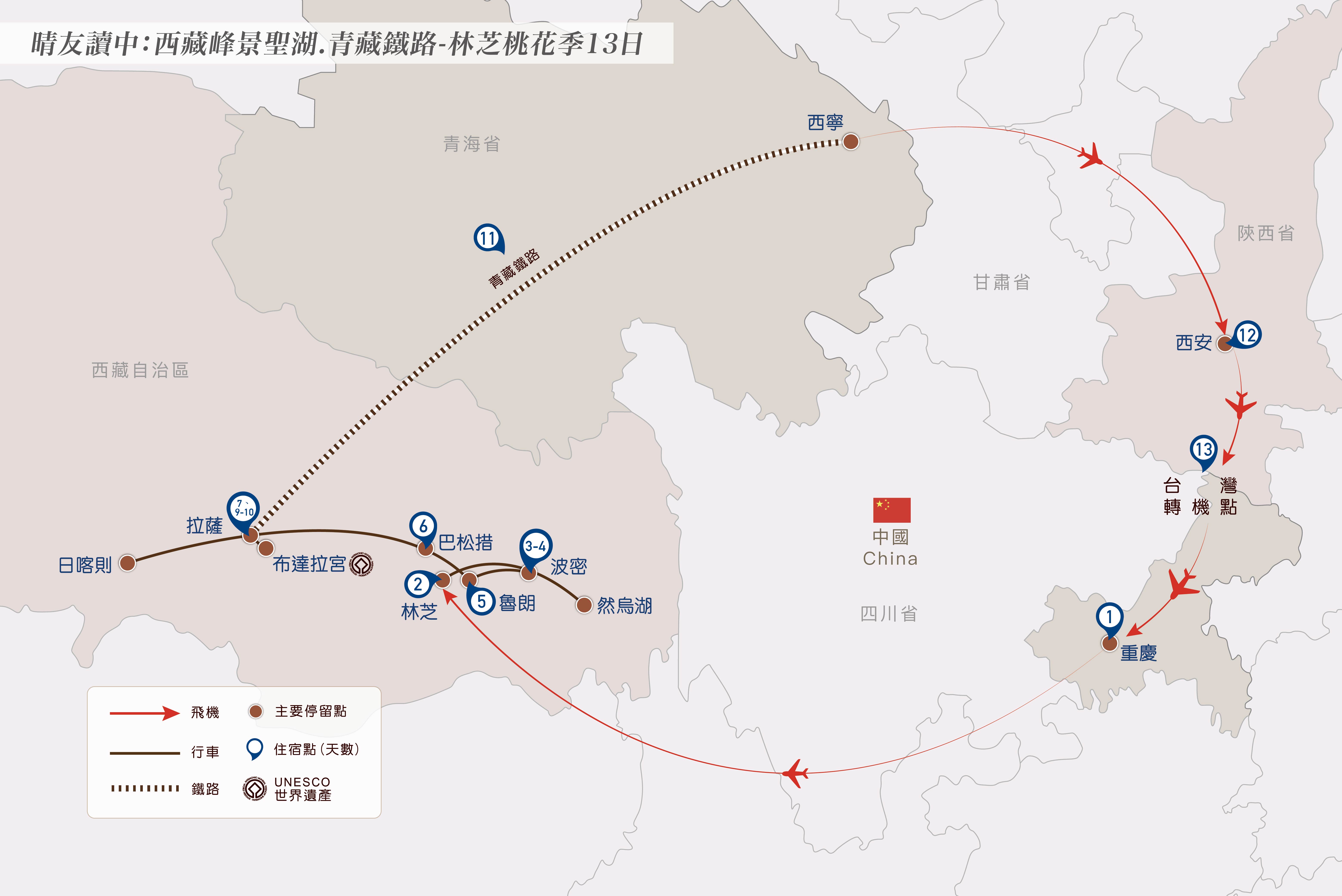 • 單人房加價:38,500 元(不含青藏火車)