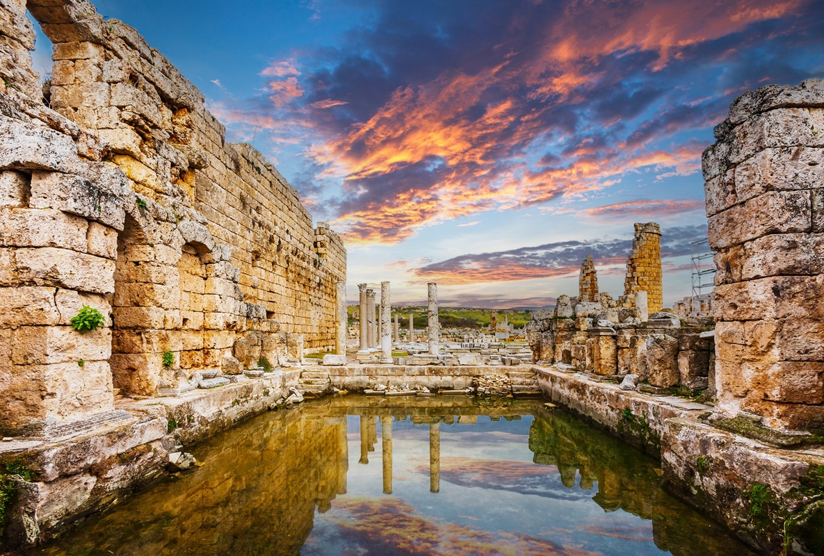 佩爾蓋古城於西元2-3世紀羅馬時期臻至輝煌,以規模巨大與完整地城市規劃聞名。擁有壯麗的羅馬城門、兩旁飾有精美雕刻的列柱大道,古羅馬體育場,還以豐富水利設施而令人印象深刻,街道水渠為該區最大的四個噴泉、兩個浴場、以及街道兩側的商店供水。