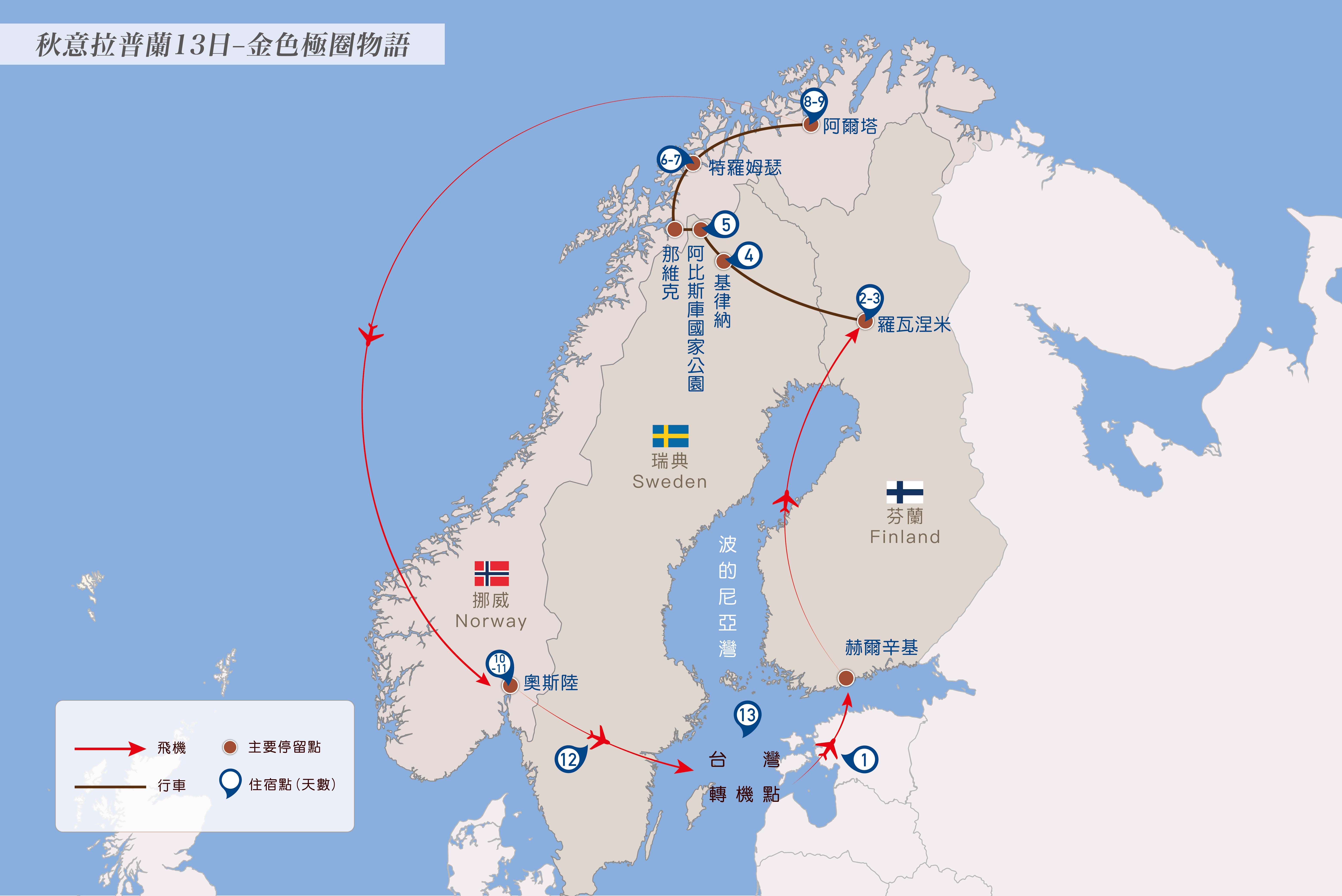 早餐:機上用餐 午餐:北歐風味料理 晚餐:轉機耗時敬請自理