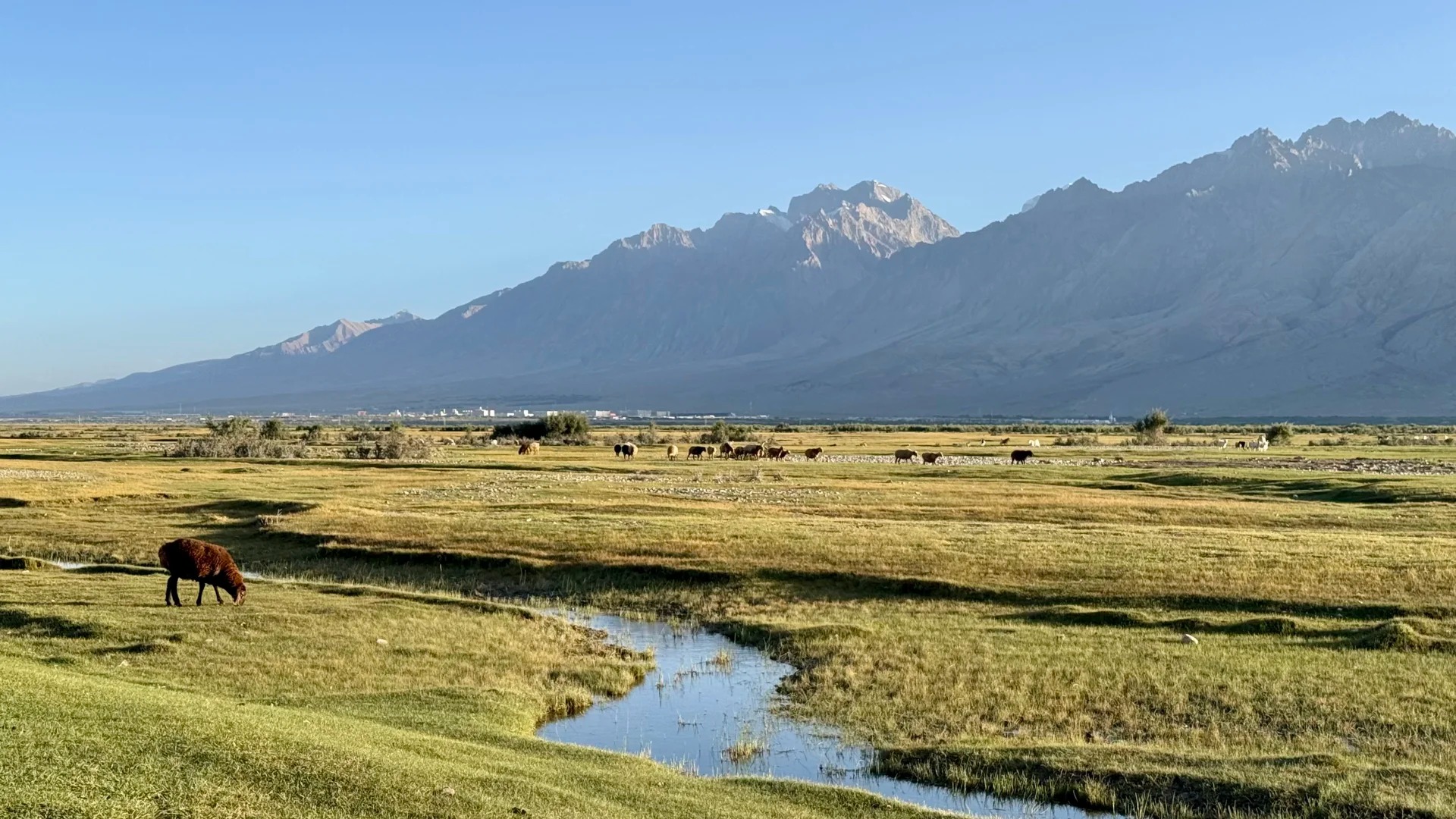金草灘,是帕米爾高原懷抱中的一塊瑰寶。它位於塔什庫爾干塔吉克自治縣城東側,與古老的石頭城遺址遙相呼應,是一片水草豐美的濕地。每當秋季來臨,灘上的草甸便染上一片溫暖的金色,在雪山與藍天的映襯下,如一條流淌的熔金地毯。