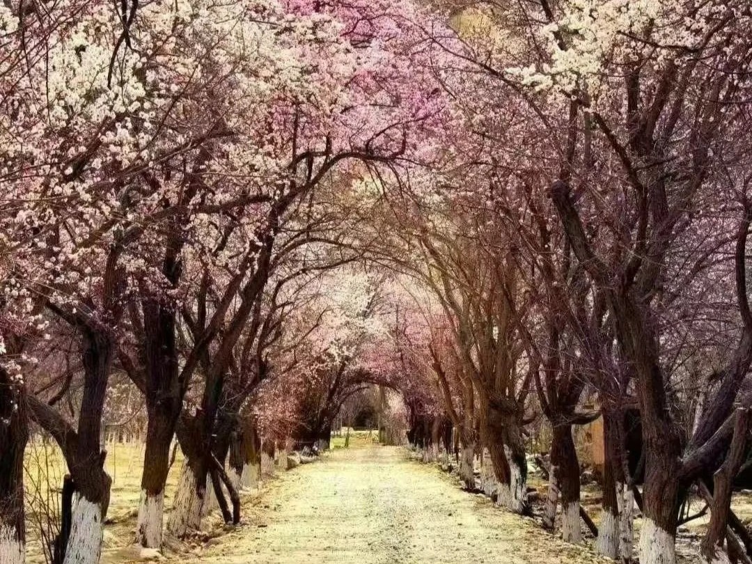 庫科西魯克鄉滿村皆是淺粉的杏花,與遠處的皚皚雪山相映成趣;是帕米爾高原上著名的杏花觀賞地。
