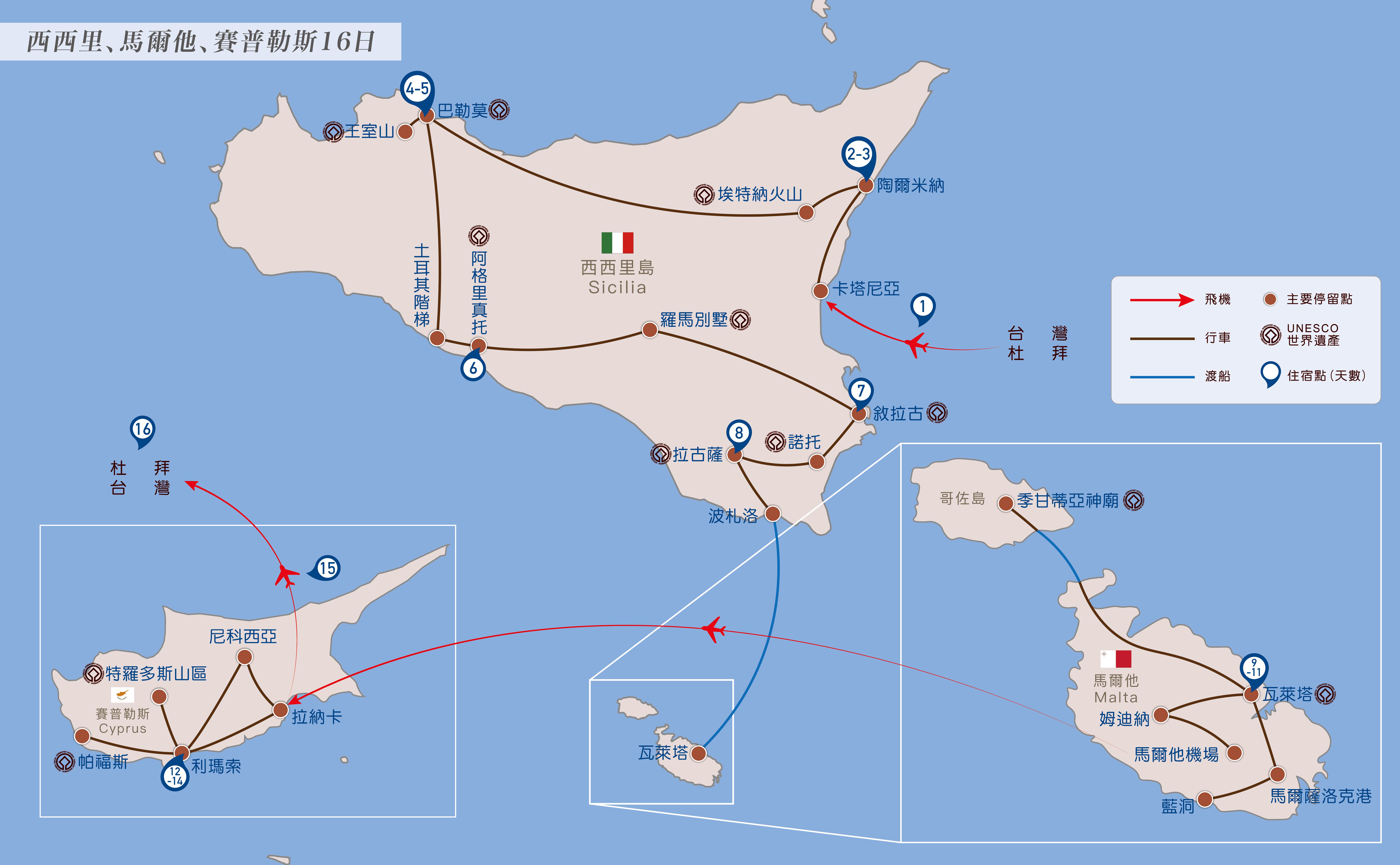特別安排與首都瓦萊塔連泊三晚,不僅僅是因為這裡有島上最好的住宿品質,而是因為相較於西西里島來說,馬爾他並不大,希望能讓您從容不迫,不需要每日打包行李,能更自在與舒適地展開旅程。
