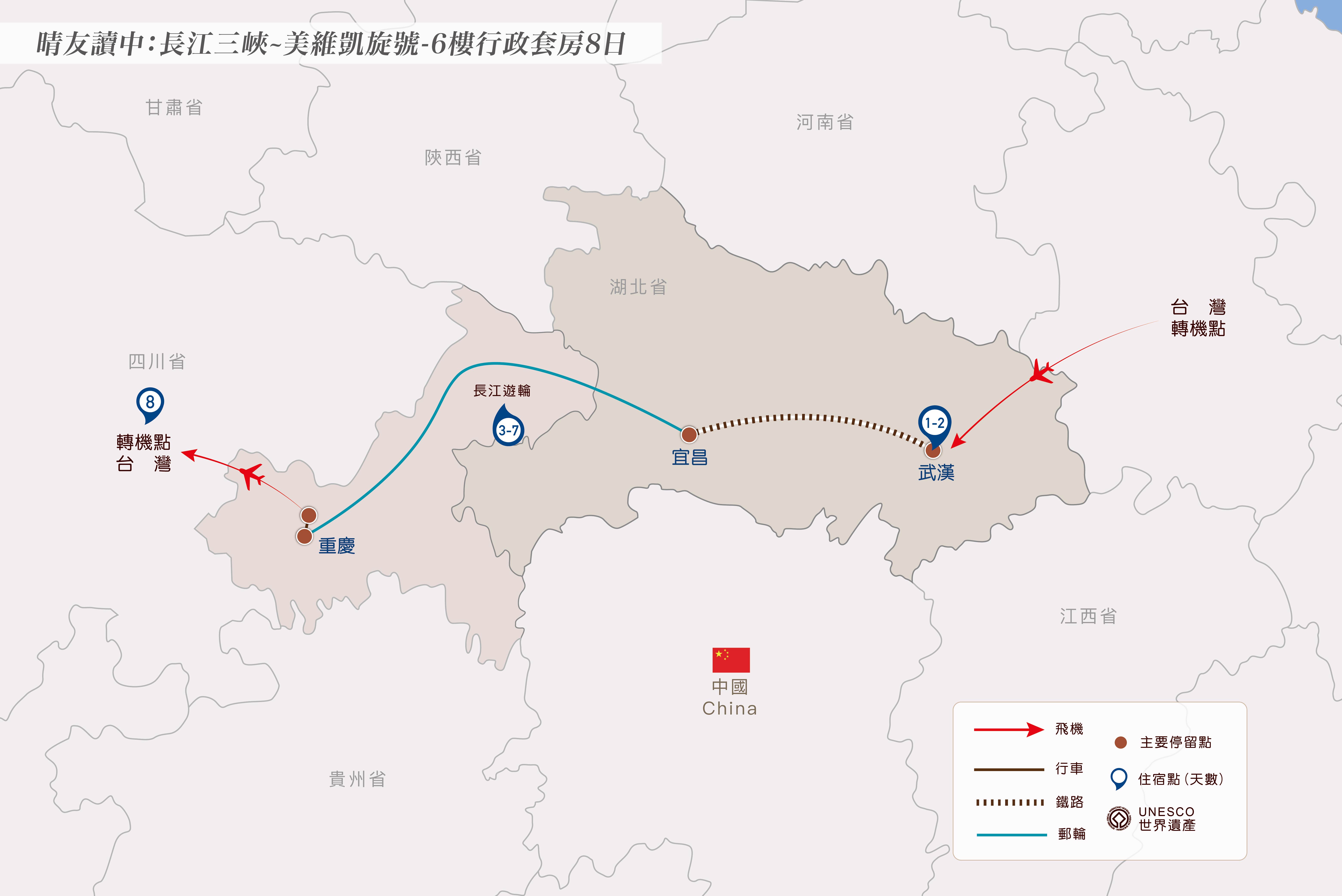 早餐:遊輪上VIP餐廳 午餐:璞食精選川菜(人民幣150) 晚餐:塵遇雲堤臻選川菜(人民幣250)