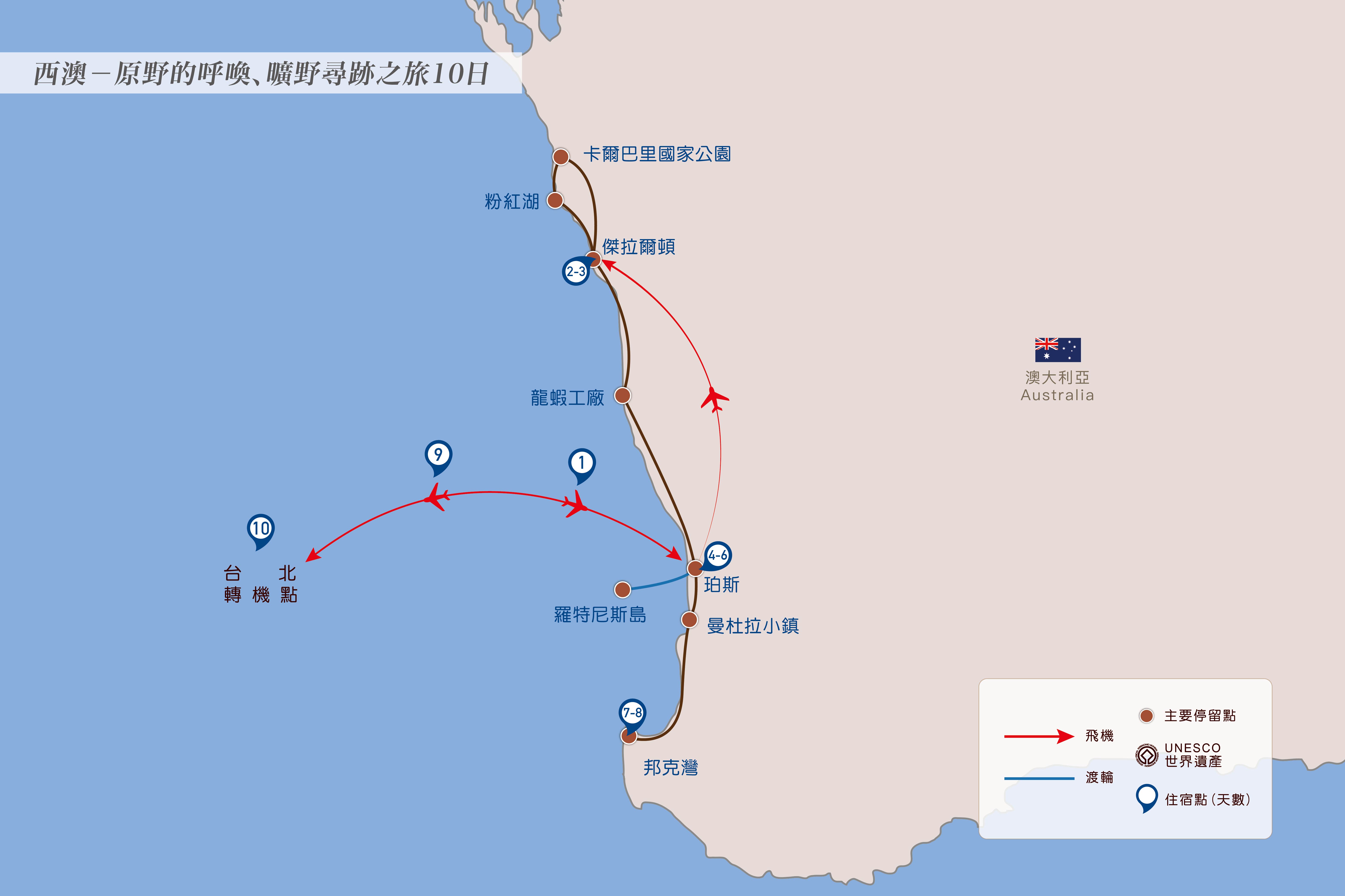 早餐:飯店用餐 午餐:亞洲風味料理 晚餐:澳式風味料理