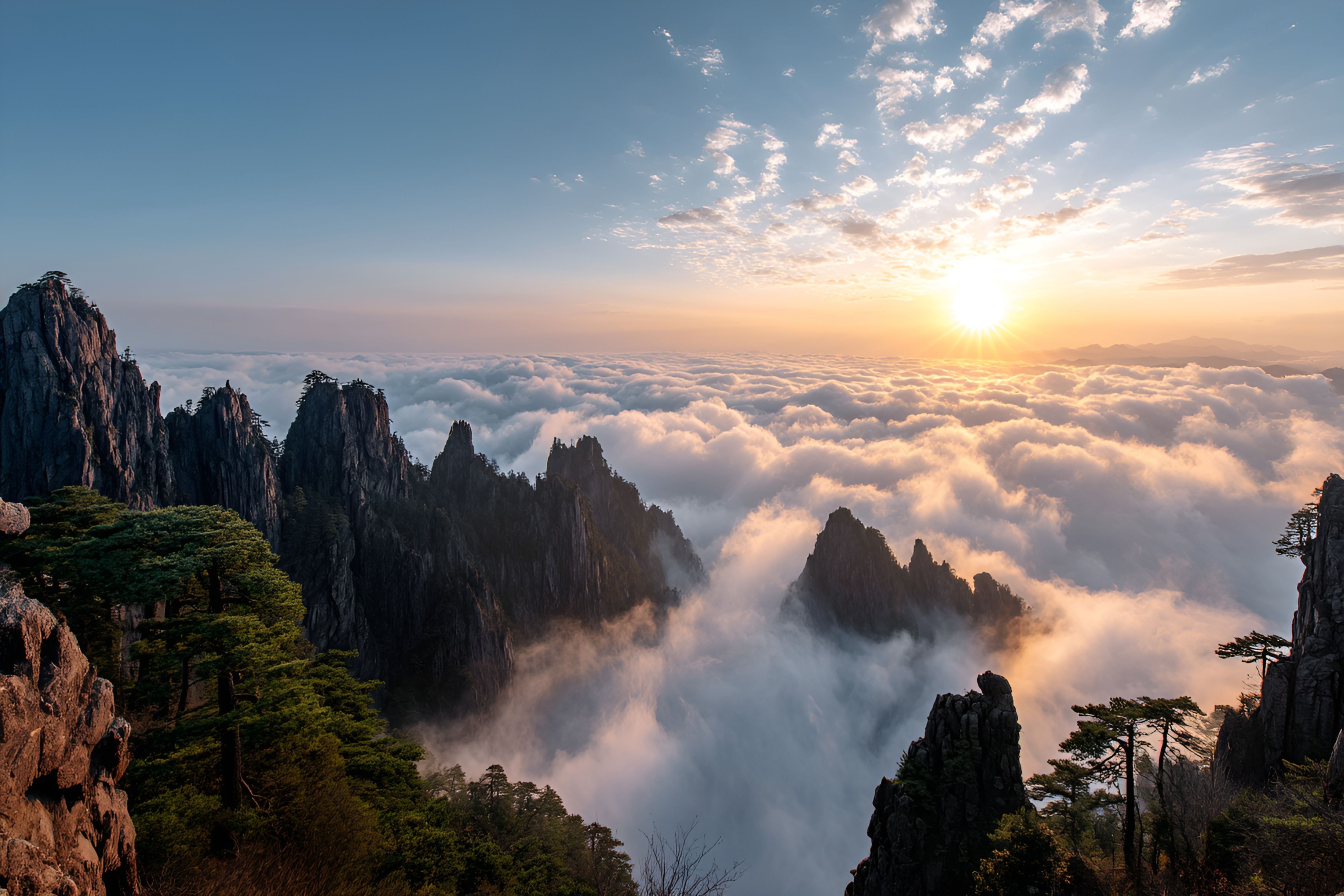 早上如果天候不差的話,安排前往光明頂觀賞日出,希望您能幸運地欣賞到黃山美麗的日出!黃山光明頂的日出堪稱一絕,絕對是值得你早起打卡的震撼體驗!作為黃山第二高峰,這裡視野開闊,雲海、奇峰和金色晨光交織,美得像幅流動的畫。
