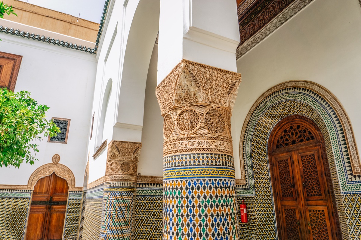 ⼗九世紀的豪華宅第,有美麗的花園、裝飾華麗以及⾺賽克拼貼藝術的房間,房間的⼤⼩由國王妻⼦受竉的程度畫分,宮殿裡的⾨廊,使⽤鏤空圖案和⽊頭拼圖,是融合摩洛哥本⼟與伊斯蘭宗教特⾊的上流宅第最佳範本。