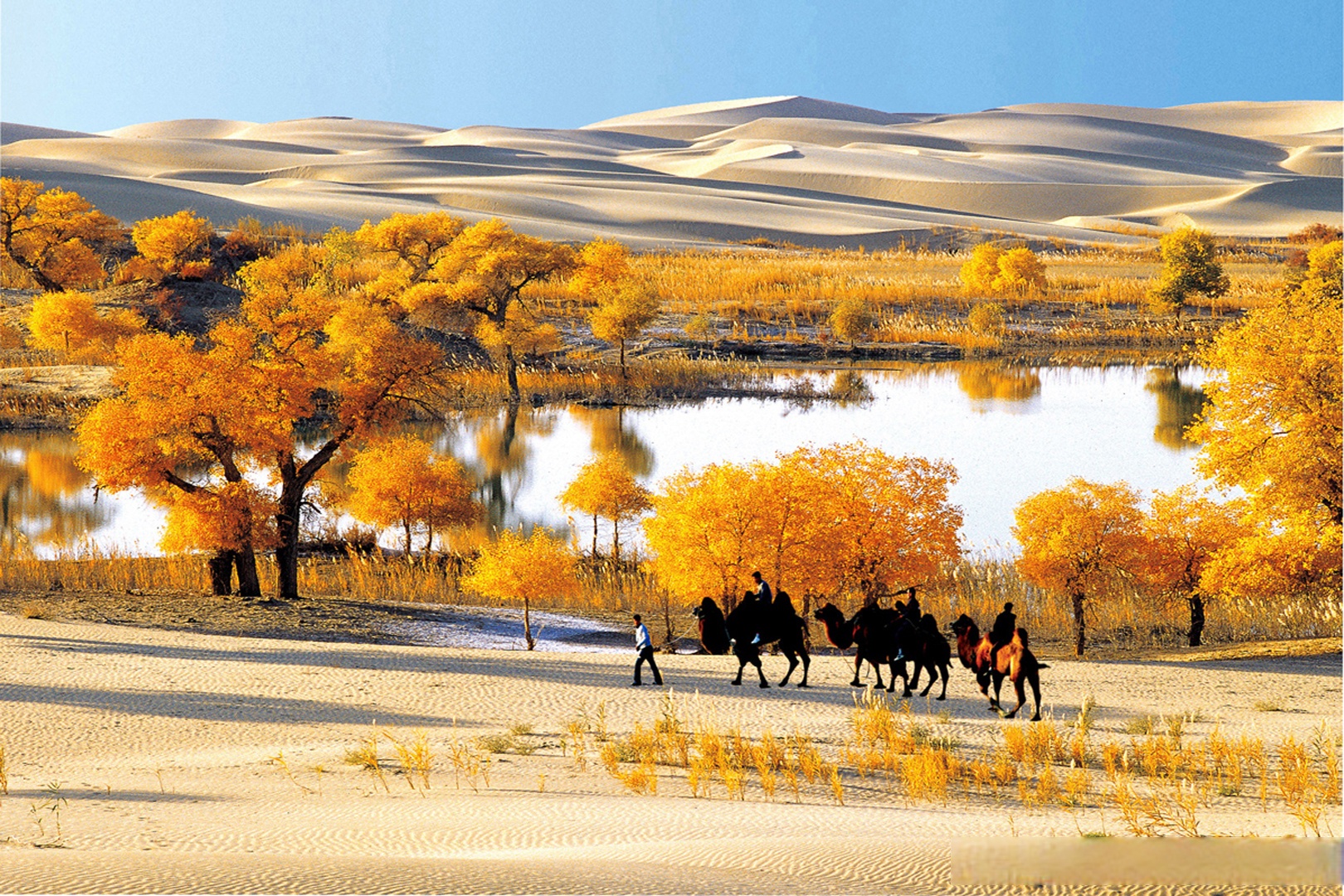 庫爾勒【杜鵑河喂天鵝】—80km—【羅布人村寨(含電瓶車)、沙漠胡楊林、塔克拉瑪幹沙漠風光、體驗沙漠騎駱駝】—80km—庫爾勒