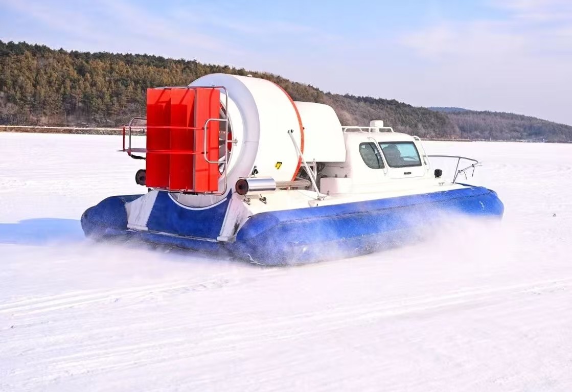 淨月潭冰上氣墊船是冬季限定的特色遊樂項目,依託高壓氣流使船體懸浮於冰面滑行,最高時速可達65公里/小時,帶來“貼地飛行”的體驗。