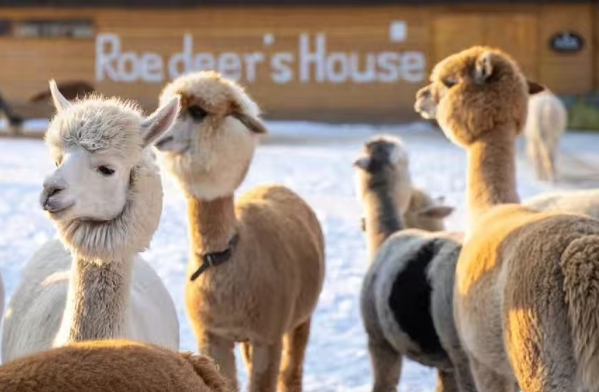 牧場還原了東北傳統村落風貌,引進了羊駝、梅花鹿、馴鹿、小馬、孔雀等溫順動物,遊客可購買胡蘿蔔或專用飼料近距離投喂、拍照。