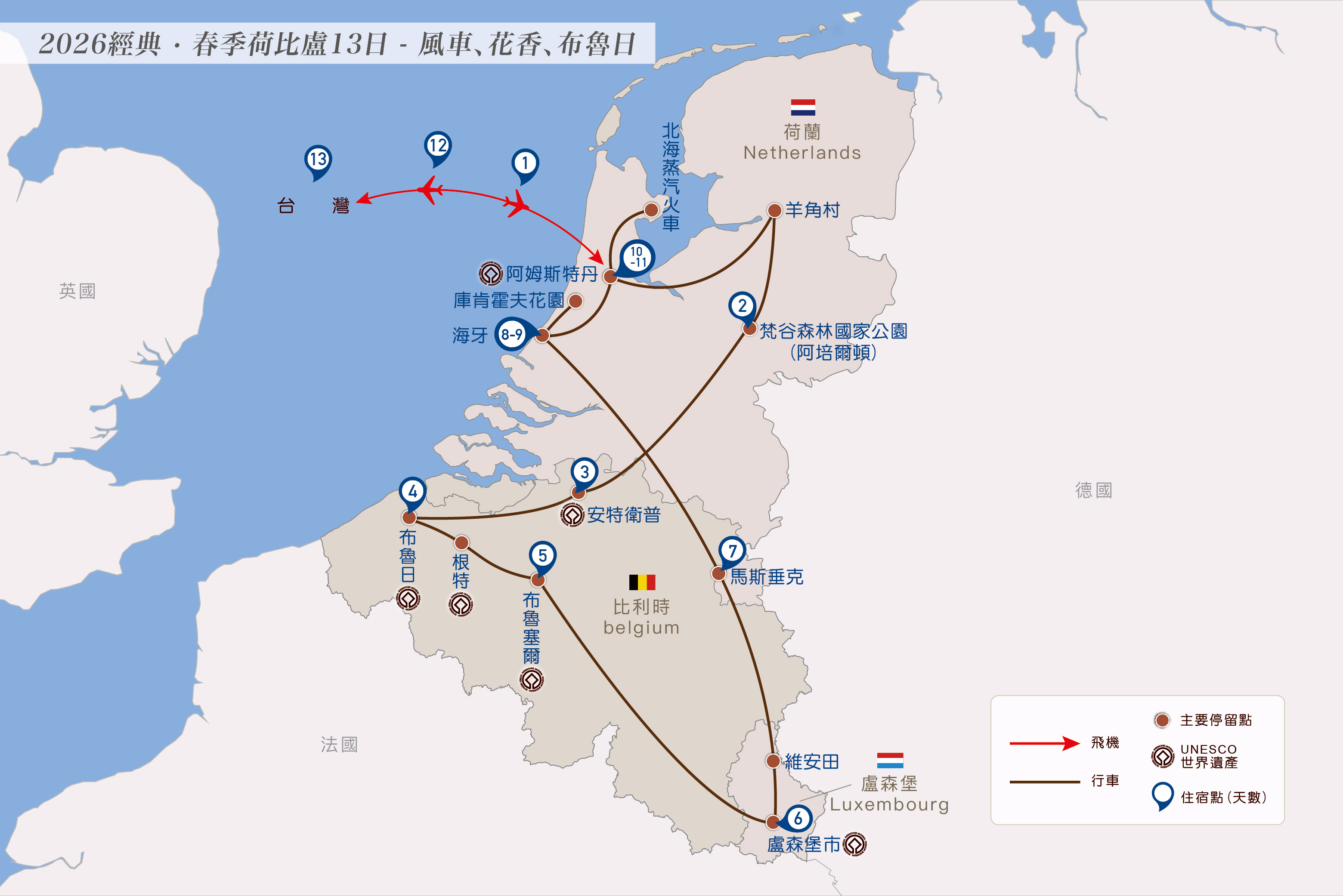 早餐:飯店用餐 午餐:景區風味料理 晚餐:比利時風味料理