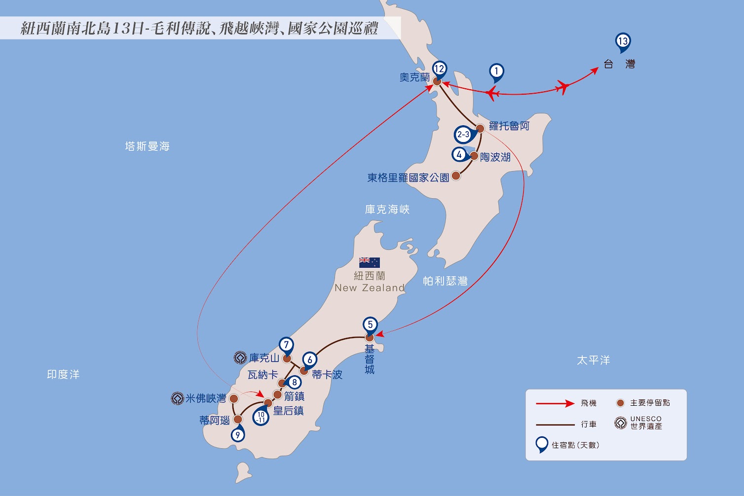 今⽇抵台後結束【紐西蘭南北島 - 毛利傳說、飛越峽灣、國家公園巡禮13⽇】的旅程。期盼下次晴天能再度和您攜⼿同遊,⼀同探索世界美⾷美景。