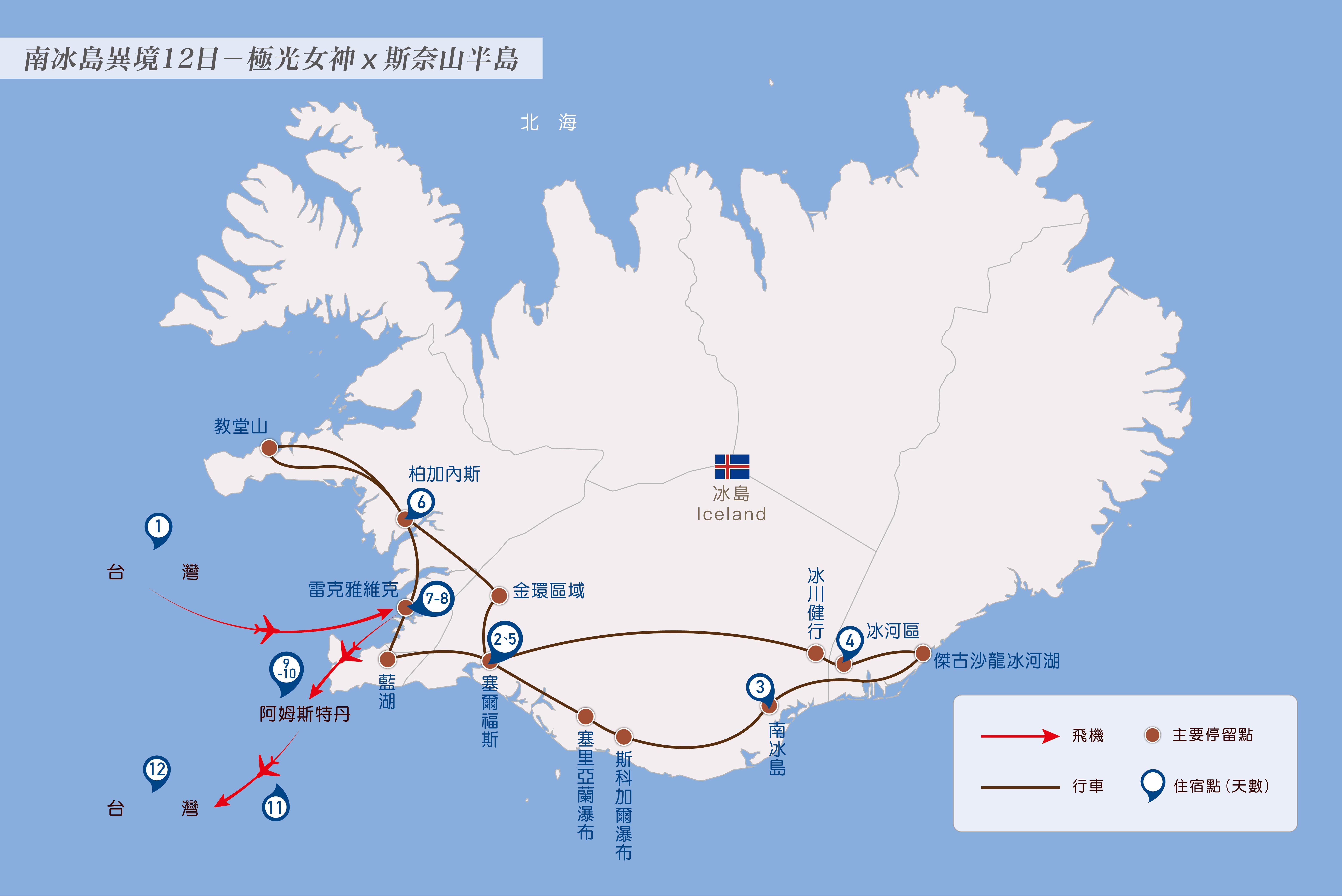 2.冰島是全世界⼈⼝密度最低的國家,飯店多無提供⾏李員服務,請您配合⾃拉,謝謝。