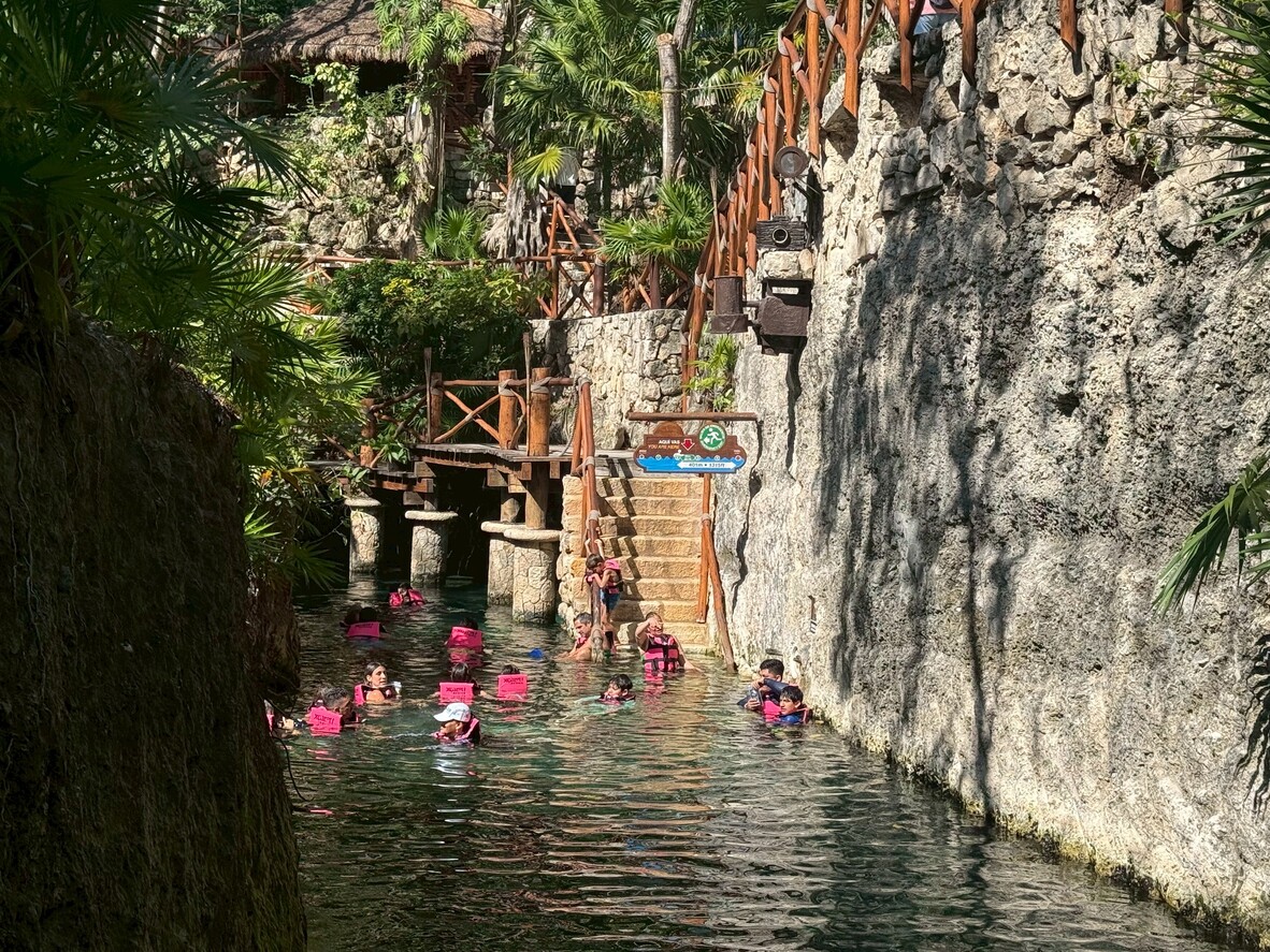 這是絕對不能錯過的招牌項目,地下溶洞為墨西哥猶加敦半島獨特石灰溶洞、鐘乳石、石筍等形成地底自然奇觀。沿著地下河緩緩漂流,幽暗洞段與天光裂隙交替,水流平穩、節奏悠閒,適合不想激烈運動也想親近自然的人,全程約600公尺,漂流時間約1小時。